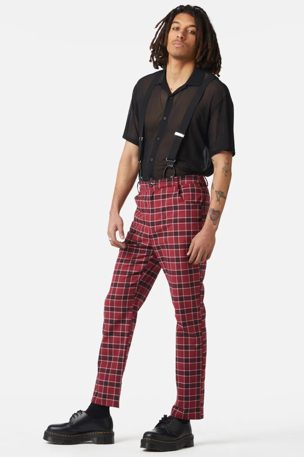 Tartan Print Brace Pants