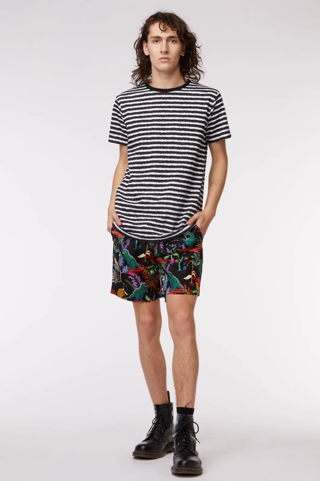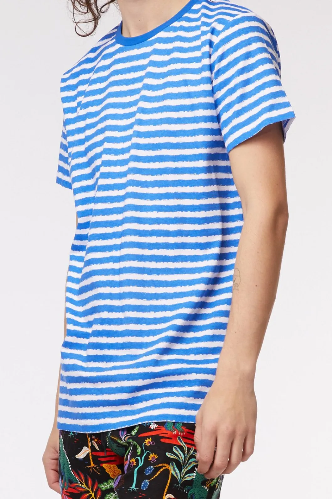 Regular Fit, Short Sleeve Tee With Round Neckline And All Over Stripe Print