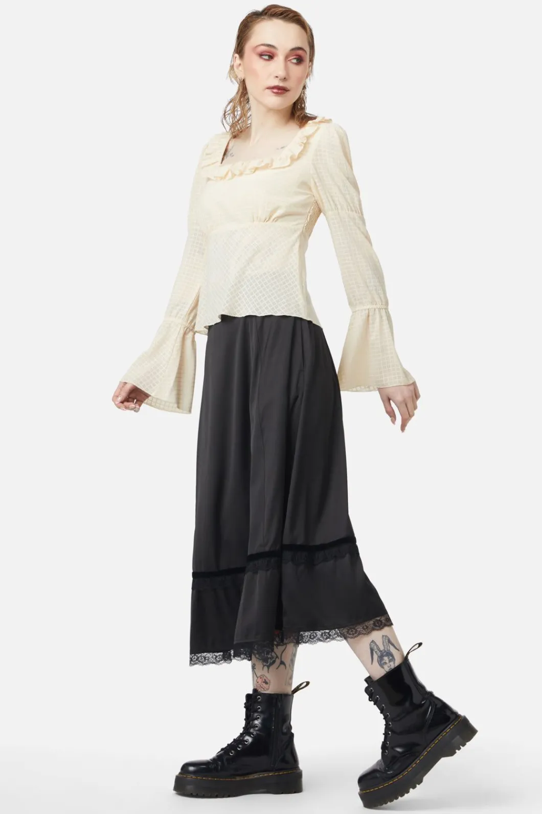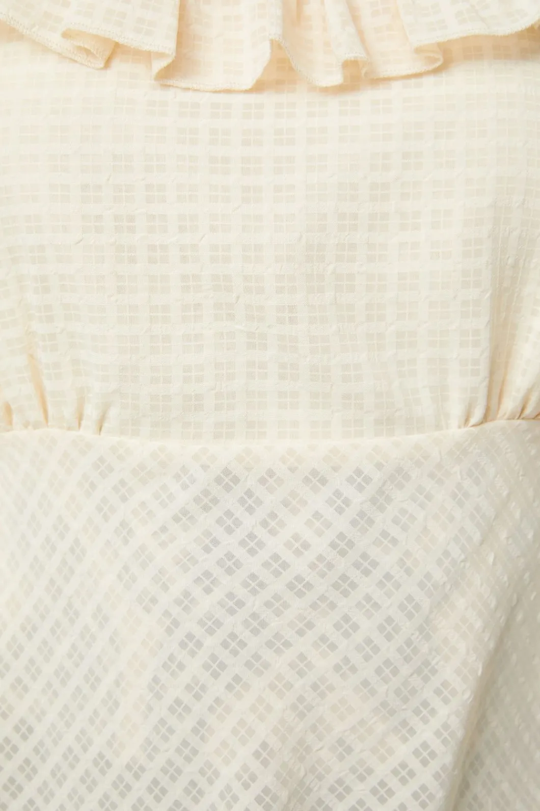 – Square Shaped Neckline With Frilly Trim