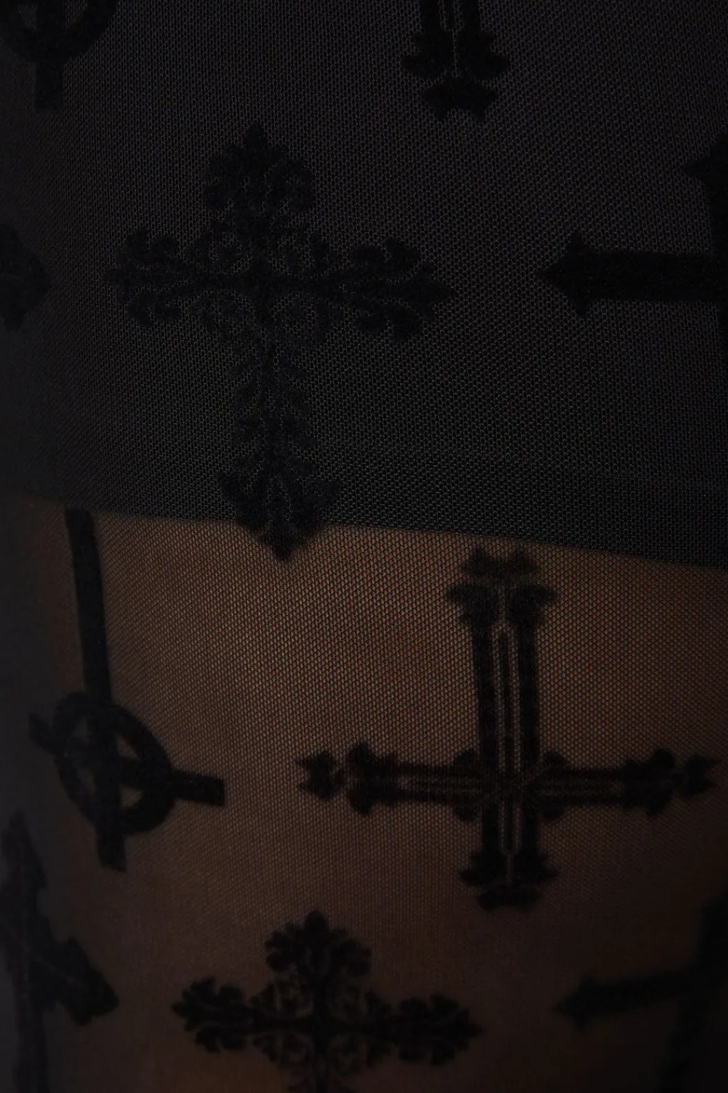 – All-Over Flocked Crucifix Pattern