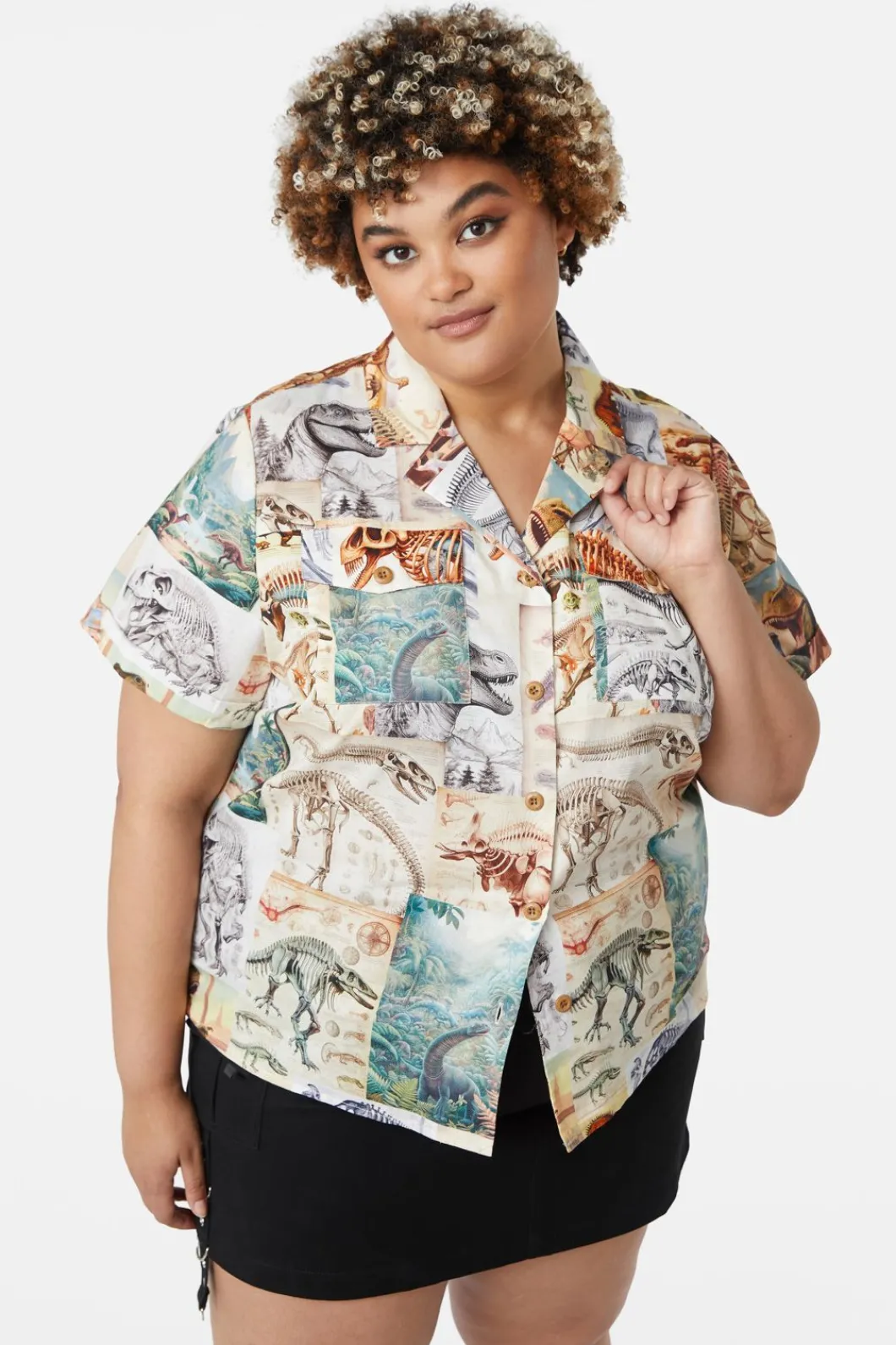 Women Dangerfield Curve Tops & Blouses*Curve Prehistoric Dino Tile Print Blouse