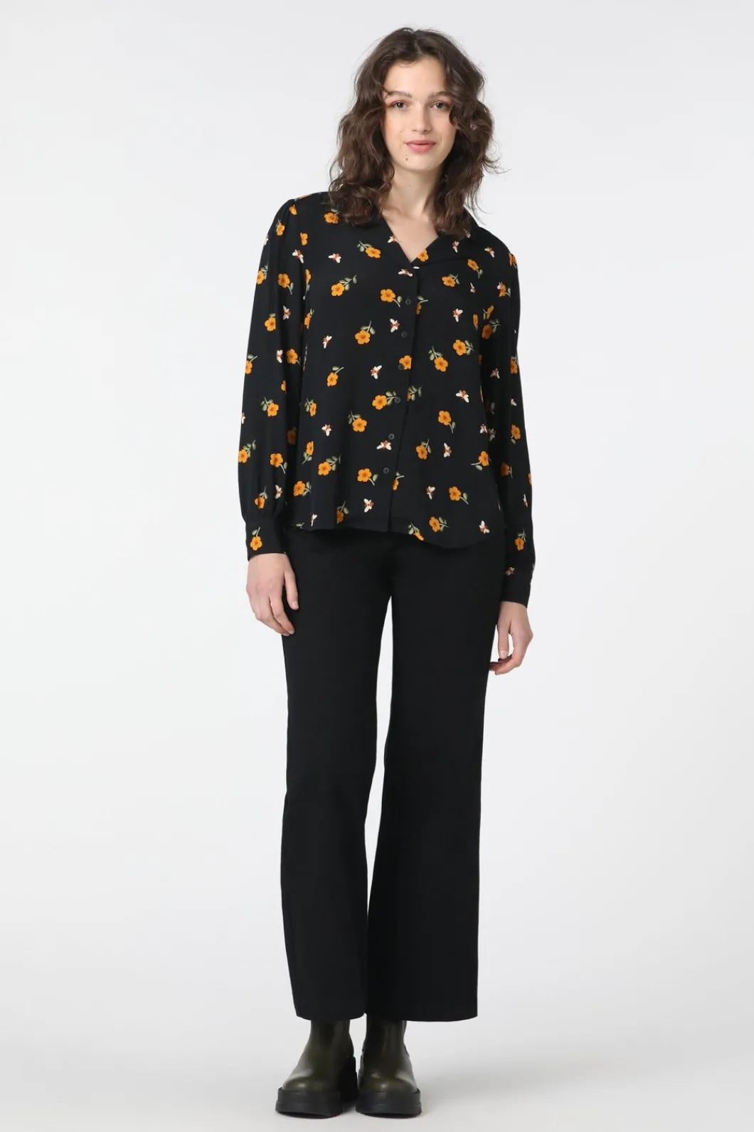 Bee & Flower Printed Long Sleeve Blouse