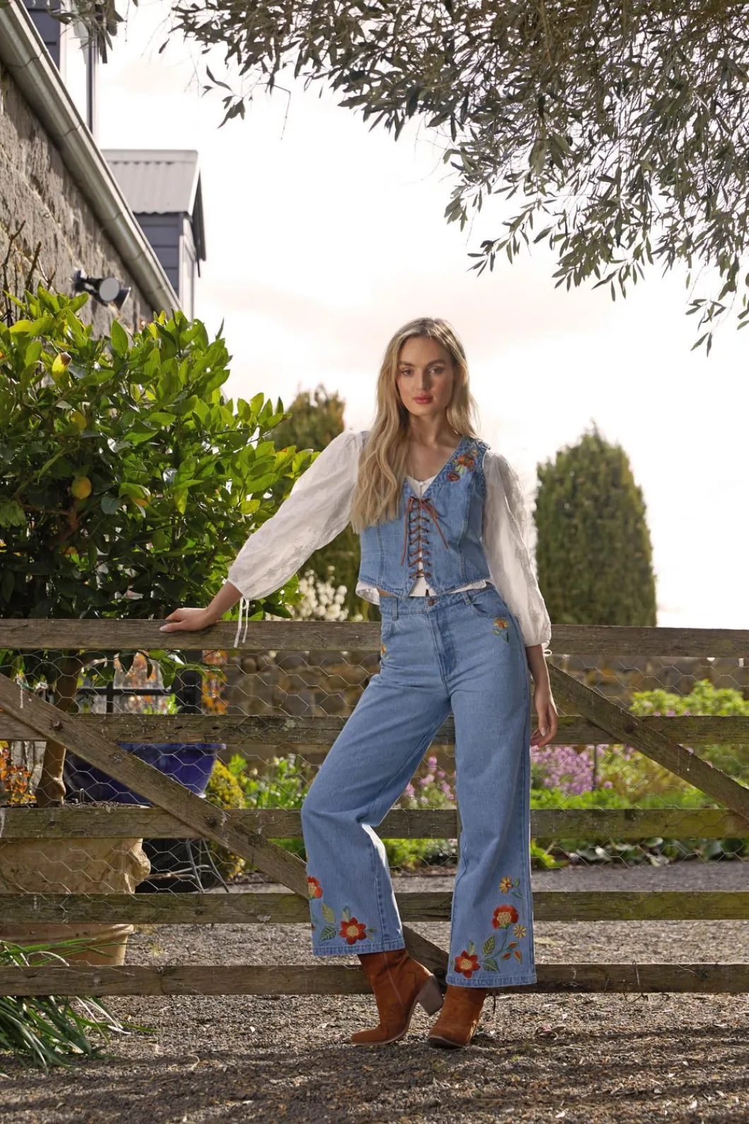 Retro Floral Embroidered Denim Vest