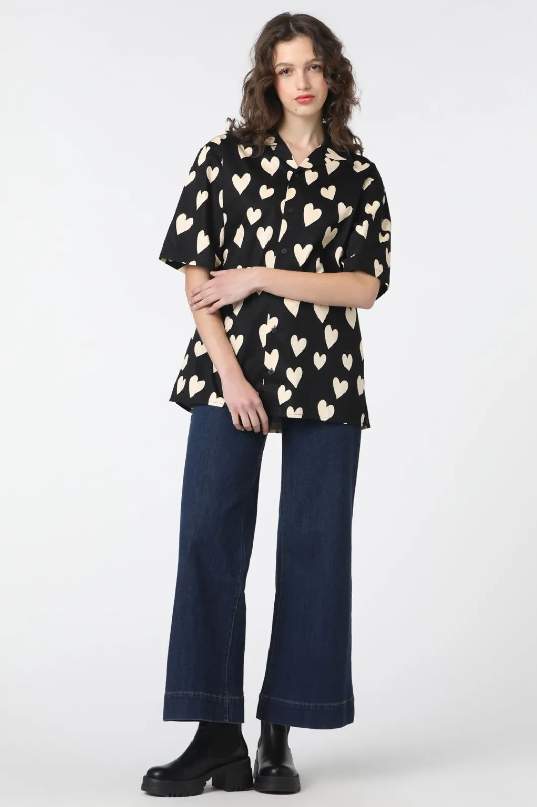 Unisex Shirt In A 2 Tone Heart Print