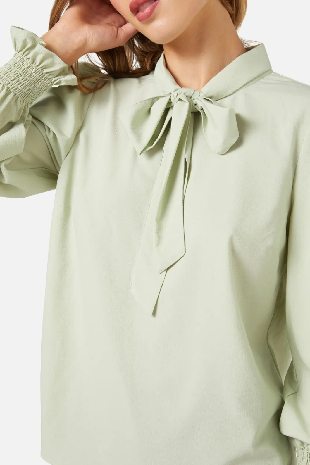 Long Sleeve Top With Bow Necktie
