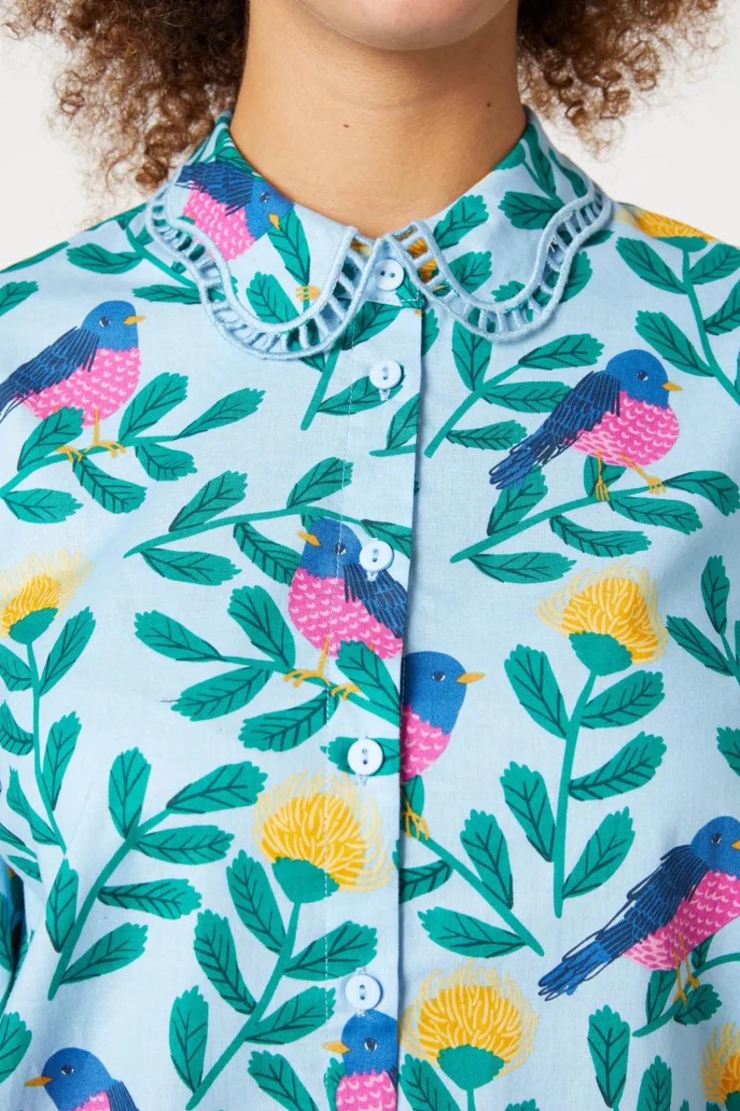 Scalloped Collar Pink Robin Printed Blouse