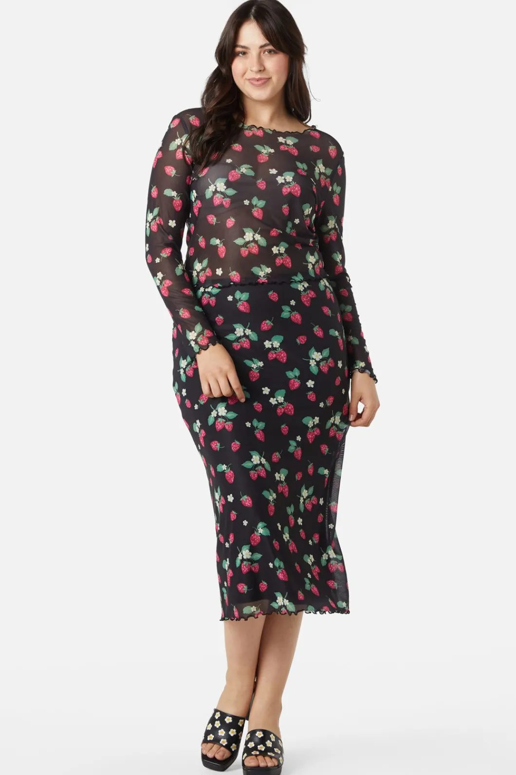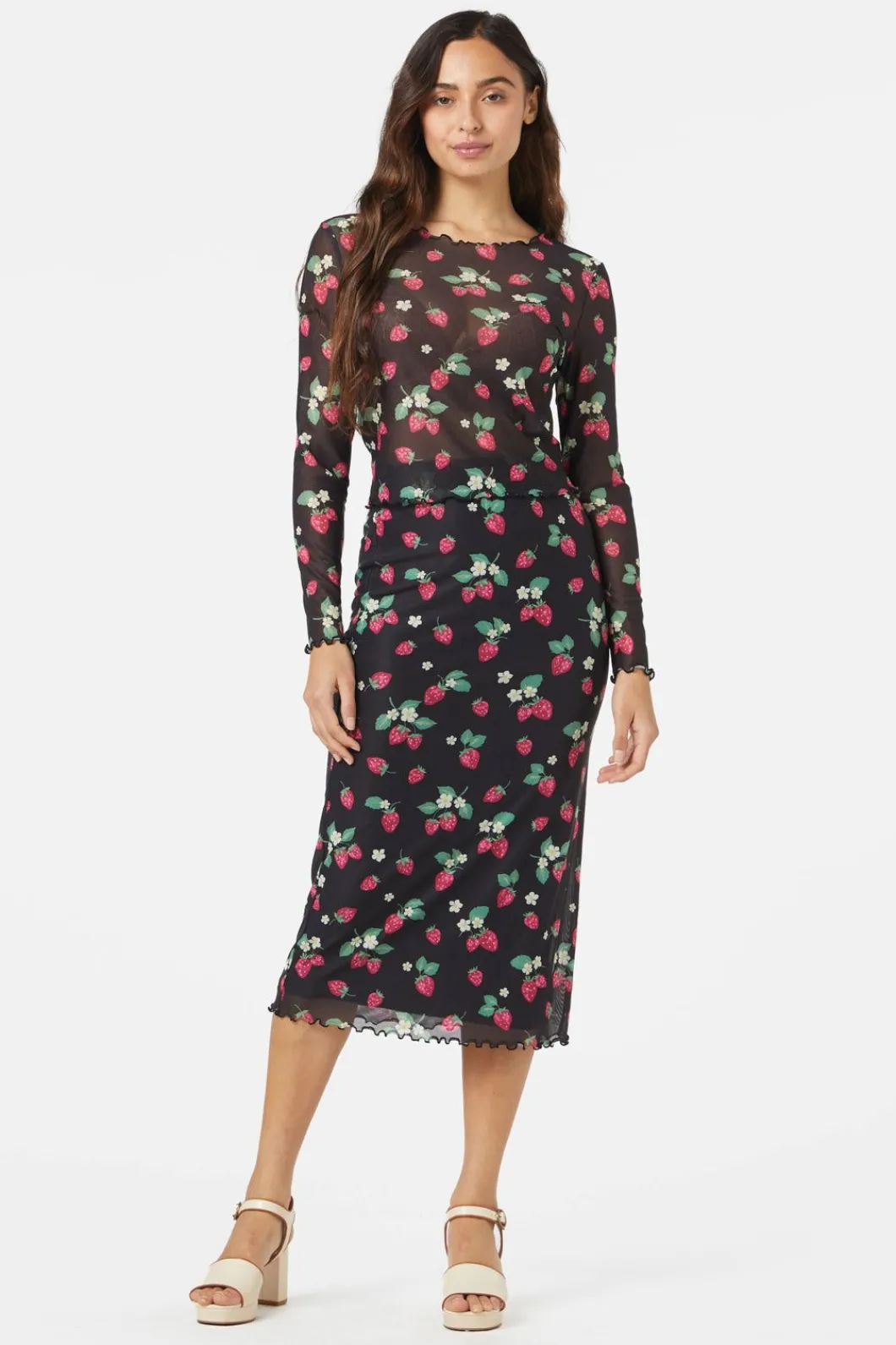 Strawberry Printed Mesh Top