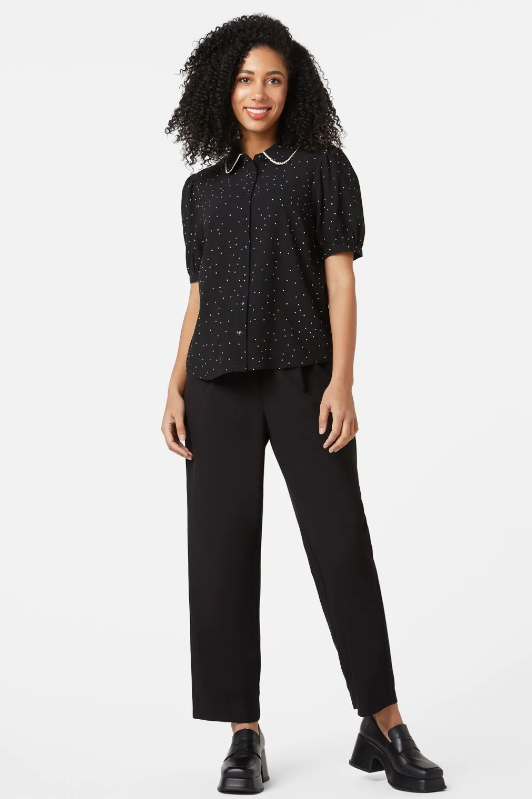 Pin Dot Short Sleeve Blouse