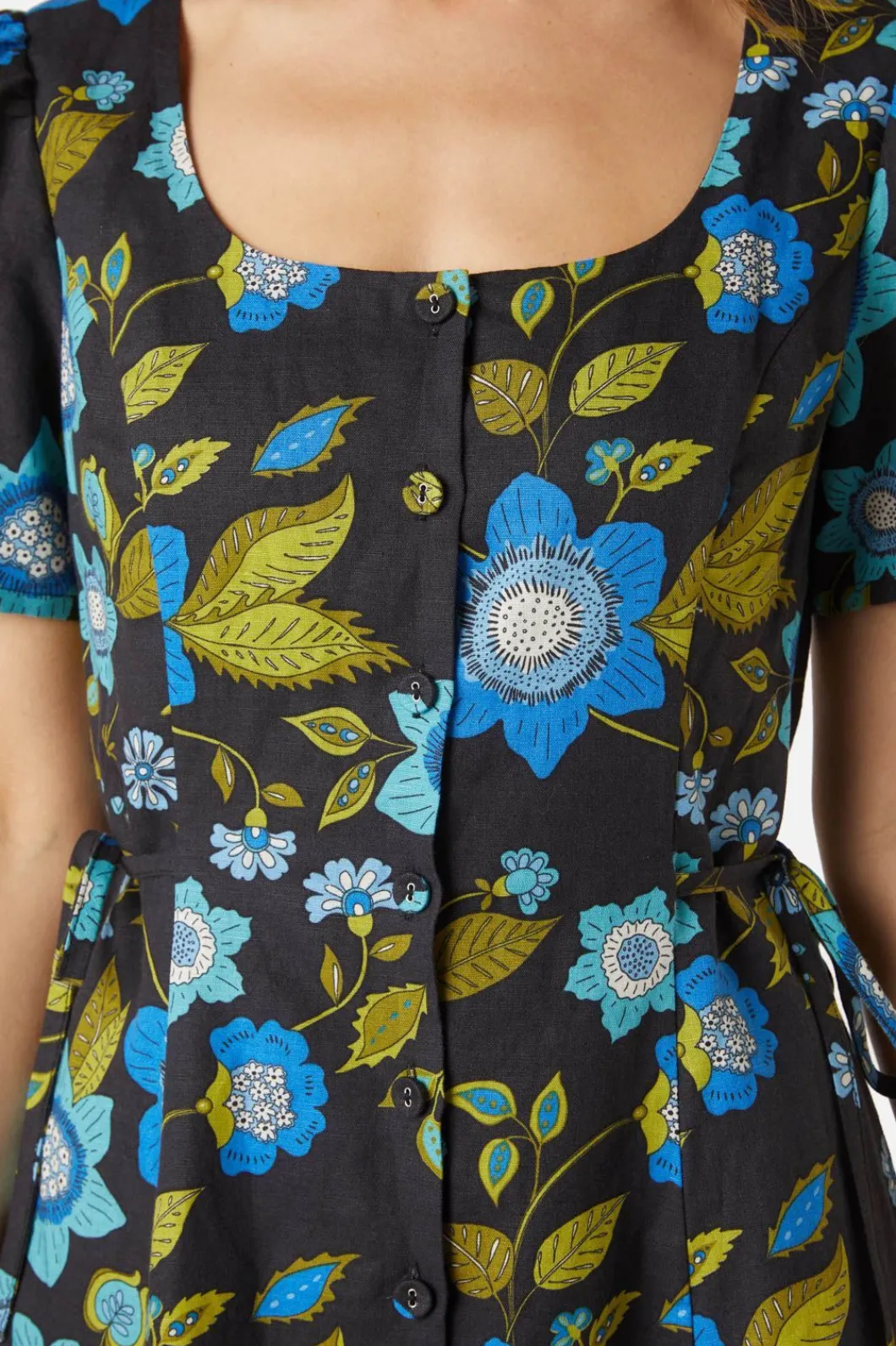 – Side Ties Coming From Princess Seam To Cinch Waist Shaping