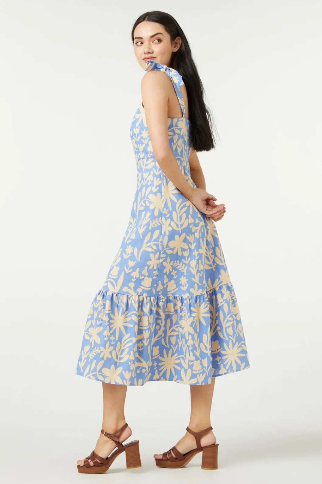 Two Tone Floral Printed Midi Dress