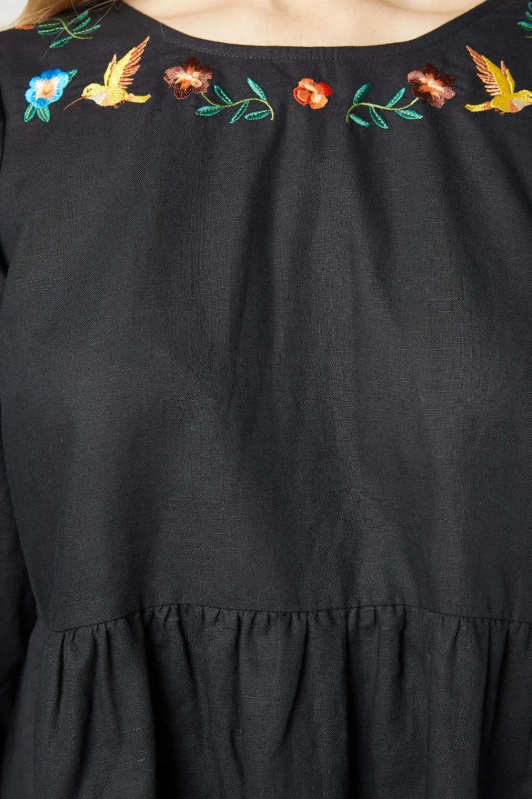 Hummingbird Embroidered Mini Dress