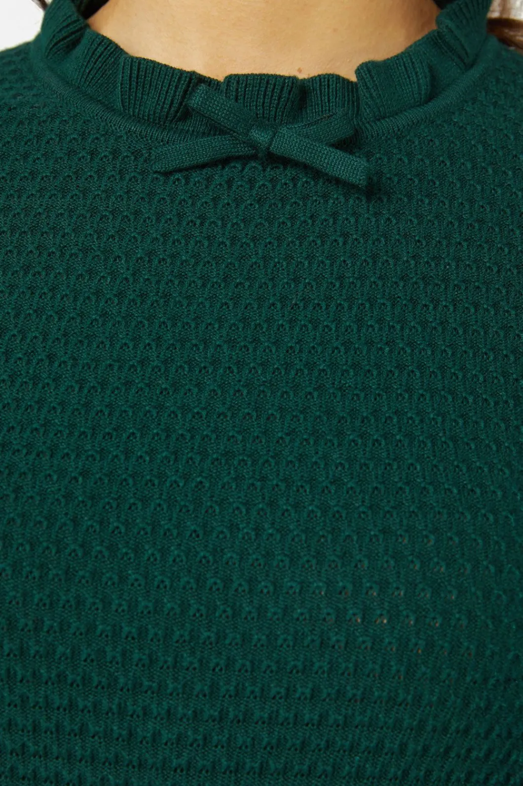 – A Layerable Knit Top With Ruffled Neckline And A Cute Bow Feature