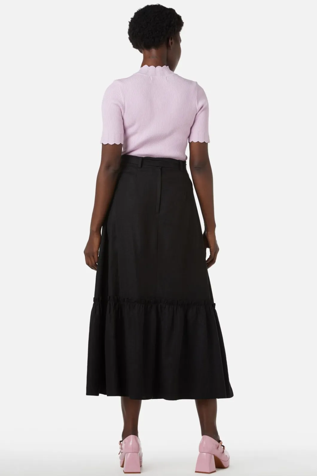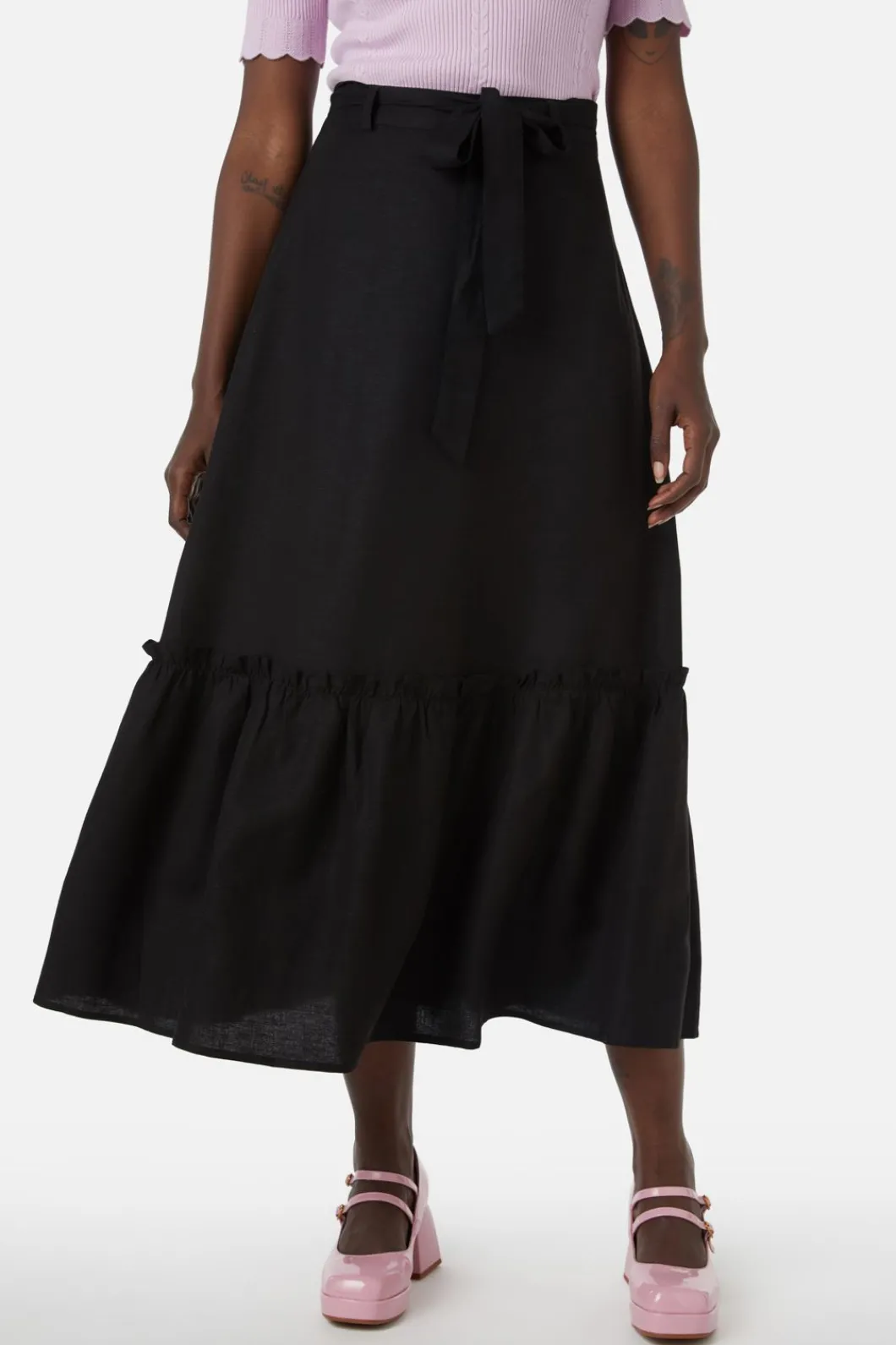 Midi Skirt With Ruffle At Hem