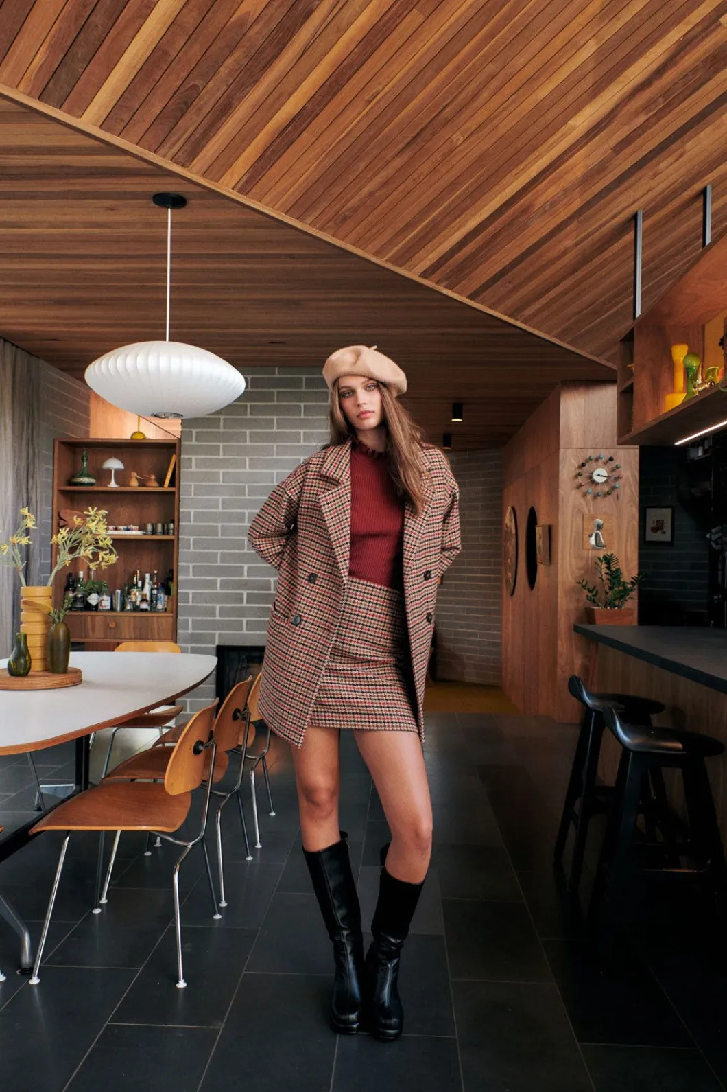 Neutral Checked Mini Skirt