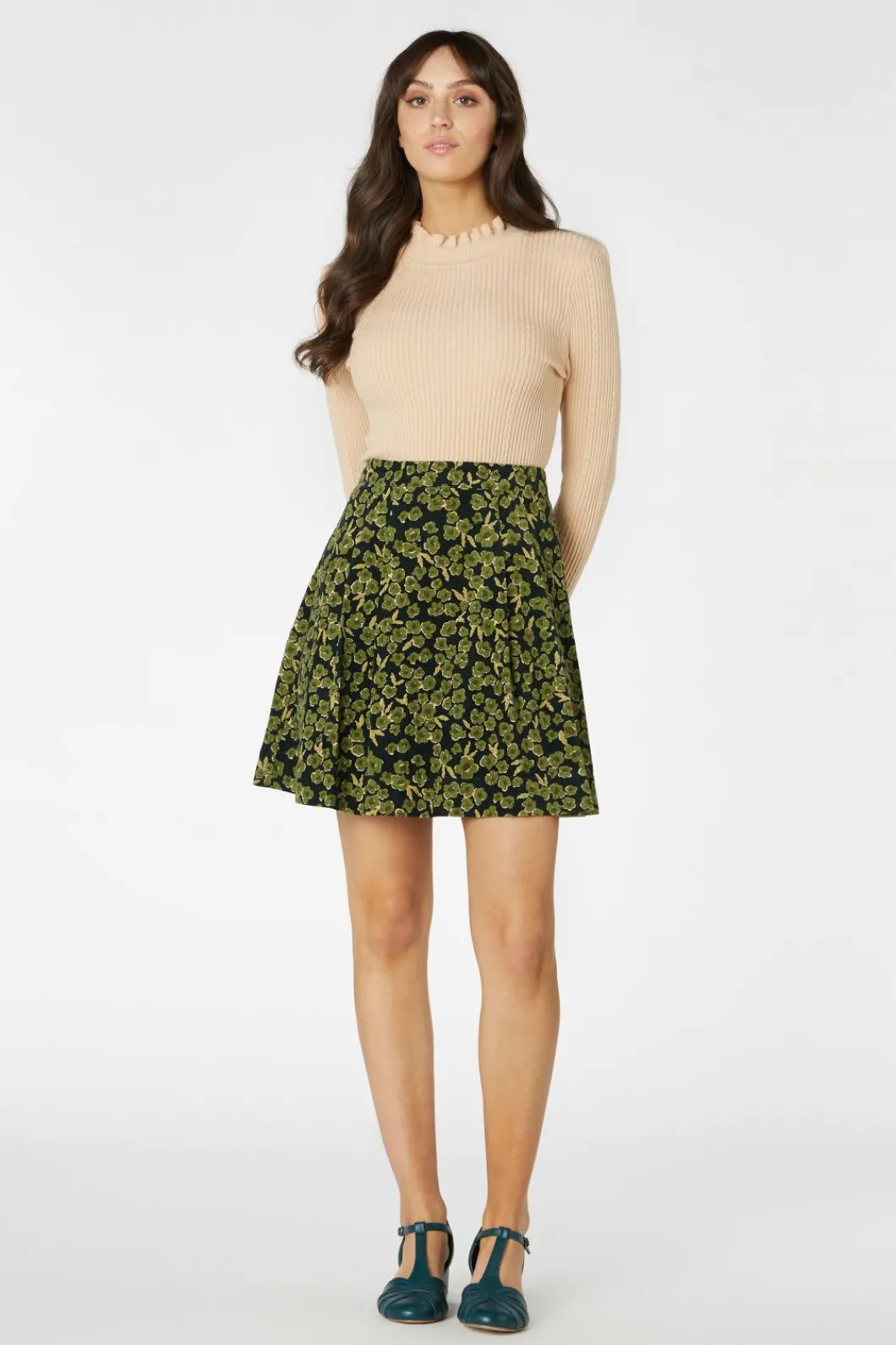 Fit To Flare Floral Corduroy Skirt