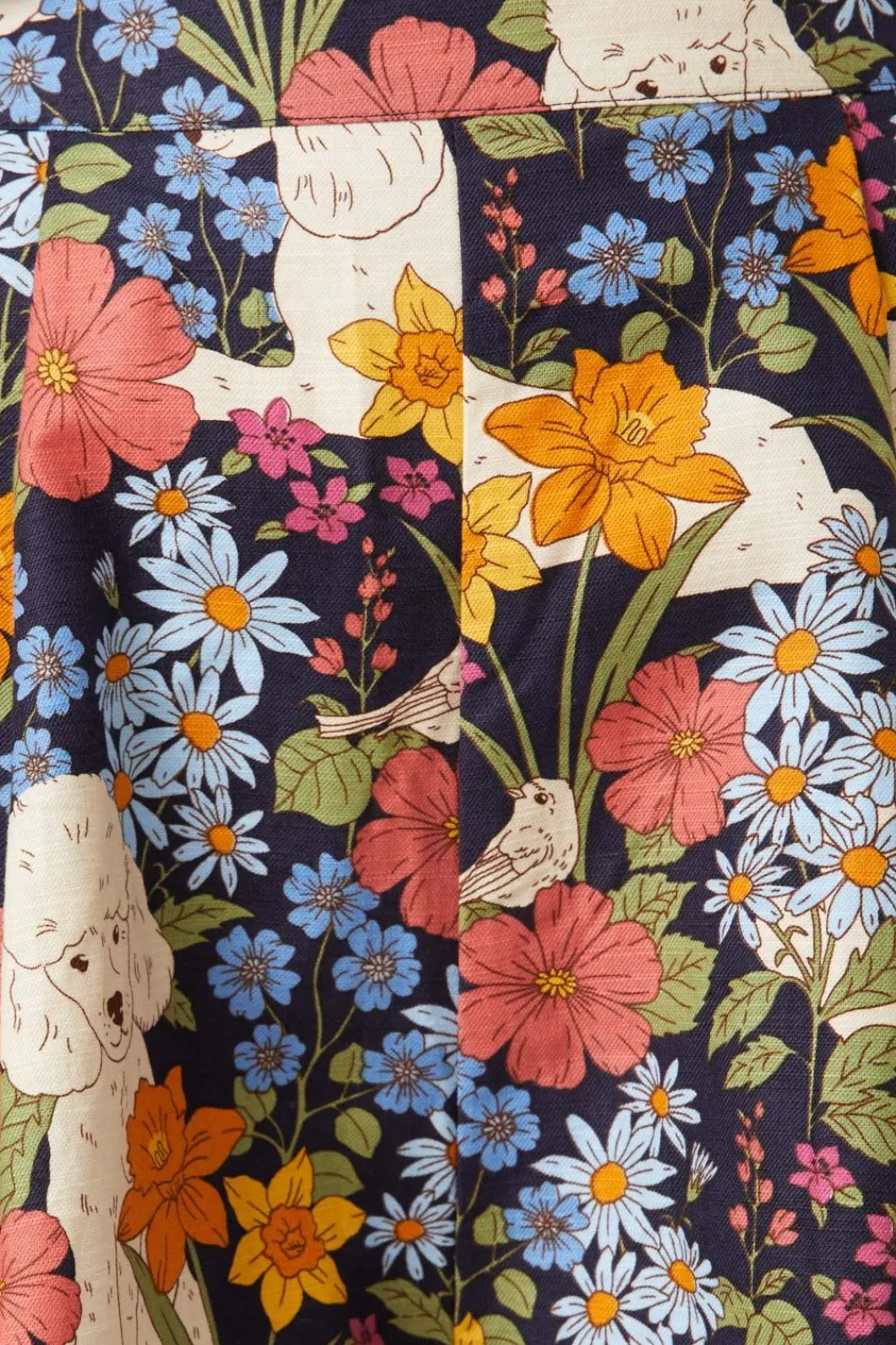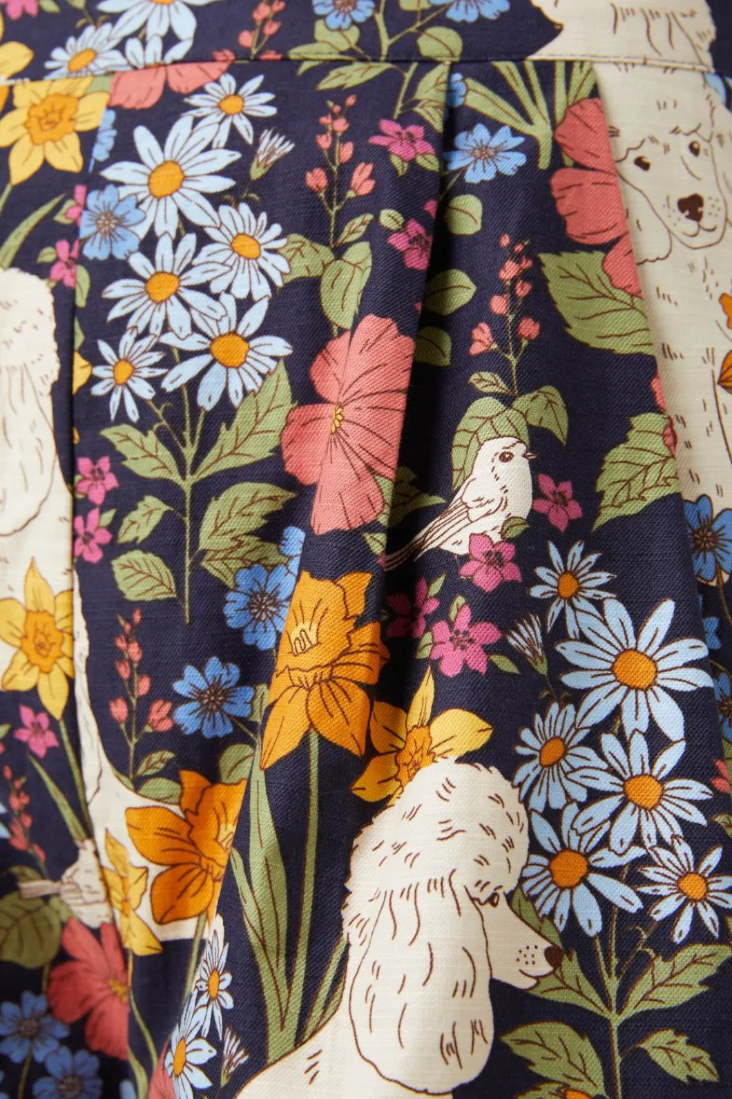 – Pretty Poodles, Daffodils, Daisies And A Sweet Little Bird, The Poodle Print Is Too Sweet To Believe