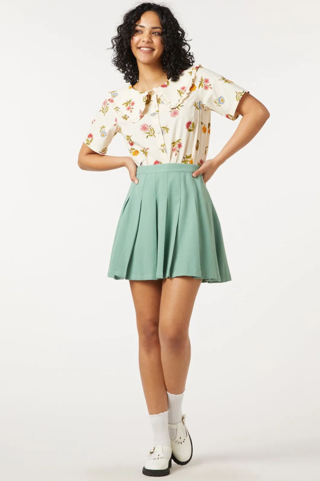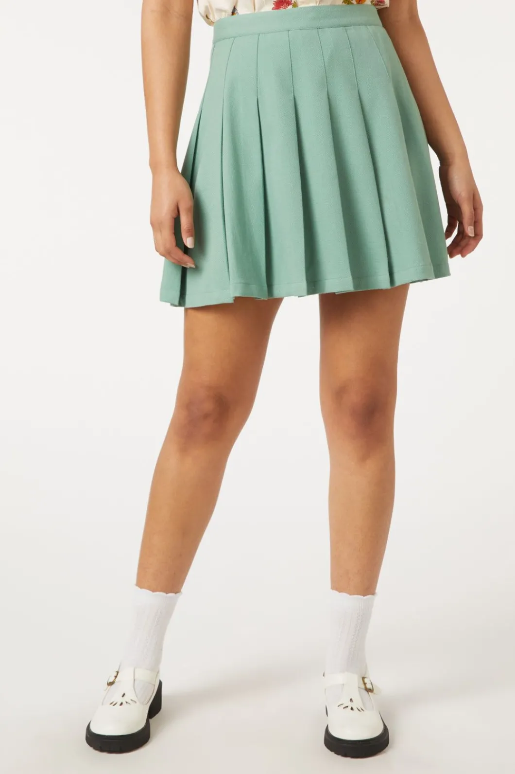 High Waisted Pleated Mini Skirt